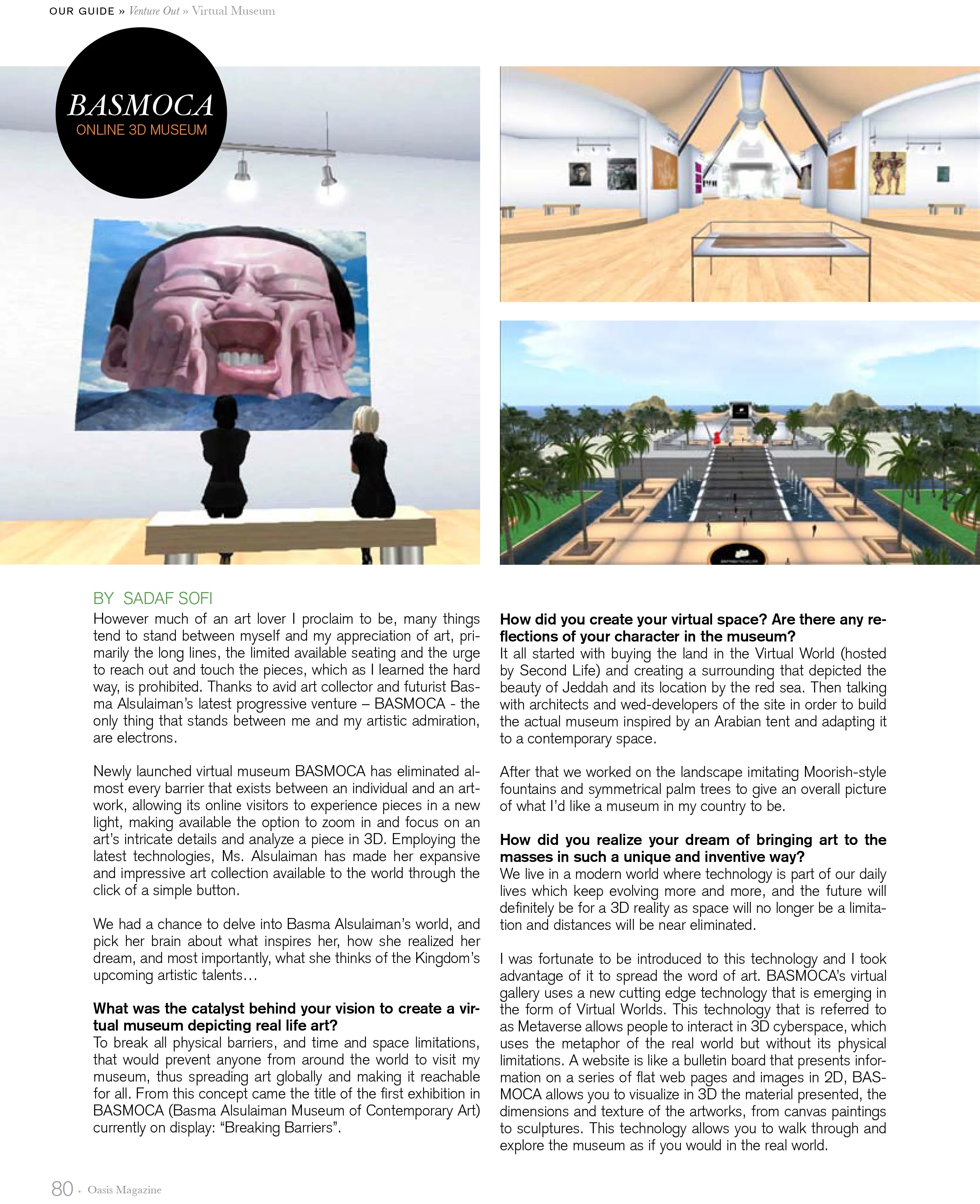 BASMOCA has been featured in one of Saudi Arabia’s most prominent art and lifestyle magazines, Oasis issue 16.