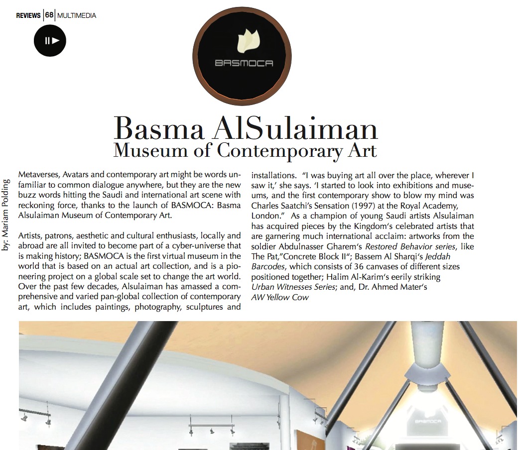 Canvas Magazine’s Canvas Daily Newspaper, published a great article on the launch of BASMOCA and Basma Alsulaiman during Art Dubai 2011, with the headline: “Numerous patrons have made their private collections public, but this April year sees a Saudi national do it with a ‘virtual’ twist.”
